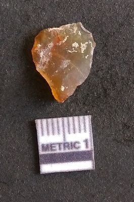 | Description / विवरण | The chalcedony flake is pale yellow in color. Translucent in appurtenance. The piece is shows sharp pointed ends and flake scars on the surface. As a result of flaking. |