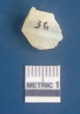 | Description / विवरण | The quartz flake has sharp flaked edges and pointed ends as a result of flaking. The piece is semi-transparent in nature with irregular fracture pattern. The piece is roughly triangular in shape and has a prominent bulb of percussion. |