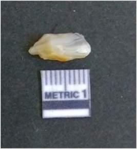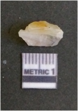 | Description / विवरण | The banded agate piece is crystalline in nature, with a smooth fracture pattern and visible bands on the flaked sides. The piece is pale in color and has sharp flaked ends. |