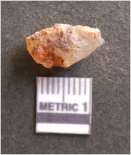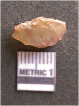 | Description / विवरण | It is chalcedony flake, translucent in appearance. The piece shows sharp pointed ends and flake scars on the surface as a result of flaking. The piece shows a bulb of percussion. |