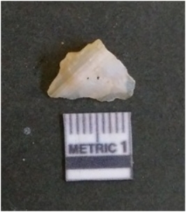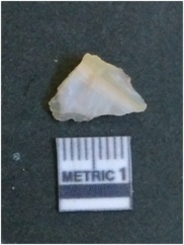 | Description / विवरण | The banded agate piece is crystalline in nature, with a smooth fracture pattern and visible bands on the flaked sides. The piece is pale in color and has sharp flaked ends. |