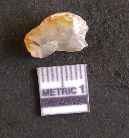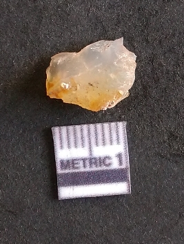 | Description / विवरण | The chalcedony flake is pale yellow in color. Translucent in appurtenance. The piece is shows sharp pointed ends and flake scars on the surface. As a result of flaking. |