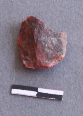 | Description / विवरण | It is a jasper fragment, with a striking platform, cortex on one end; there are many flake scars with ripples on it. |