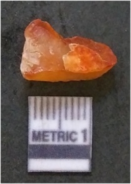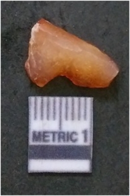 | Description / विवरण | It is carnelian flake red in color, with sharp flakes edges and a small bulb of percussion owing to knapping activity. The piece has sharp flaked edges and a crypto-crystalline matrix. |