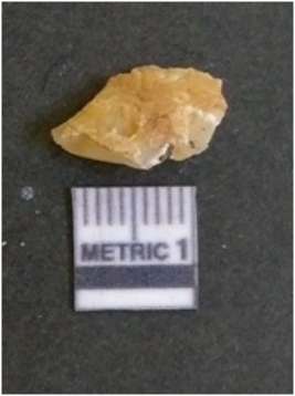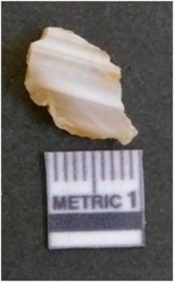 | Description / विवरण | The banded agate piece is crystalline in nature, with a smooth fracture pattern and visible bands on the flaked sides. The piece is pale in color and has sharp flaked ends. |