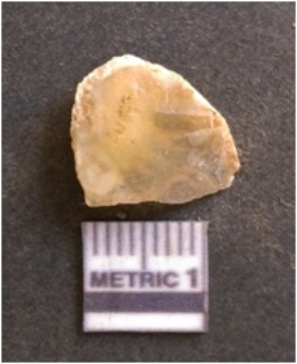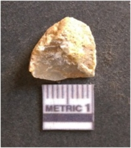 | Description / विवरण | It is chalcedony flake, translucent in appearance. The piece shows sharp pointed ends and flake scars on the surface as a result of flaking. The piece shows a bulb of percussion. |