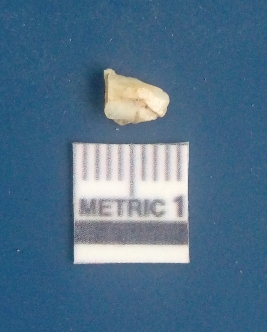 | Description / विवरण | The quartz flake has sharp flaked edges and pointed ends as a result of flaking. The piece is semi-transparent in nature with irregular fracture pattern. The piece is roughly triangular in shape and has a prominent bulb of percussion. |