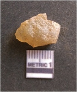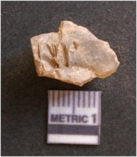 | Description / विवरण | It is chalcedony flake, translucent in appearance. The piece shows sharp pointed ends and flake scars on the surface as a result of flaking. The piece shows a bulb of percussion. |