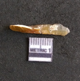 | Description / विवरण | The chalcedony flake is pale yellow in color. Translucent in appurtenance. The piece is shows sharp pointed ends and flake scars on the surface. As a result of flaking. |