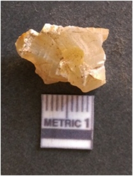 | Description / विवरण | It is chalcedony flake, translucent in appearance. The piece shows sharp pointed ends and flake scars on the surface as a result of flaking. The piece shows a bulb of percussion. |