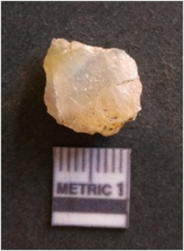 | Description / विवरण | It is chalcedony flake, translucent in appearance. The piece shows sharp pointed ends and flake scars on the surface as a result of flaking. The piece shows a bulb of percussion. |