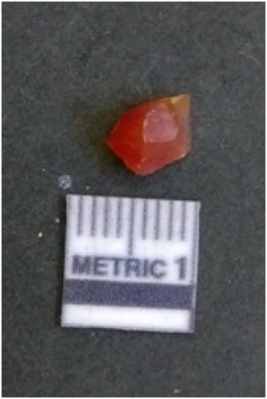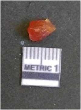 | Description / विवरण | It is carnelian flake red in color, with sharp flakes edges and a small bulb of percussion owing to knapping activity. The piece has sharp flaked edges and a crypto-crystalline matrix. |