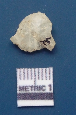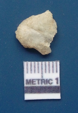 | Description / विवरण | The quartz flake has sharp flaked edges and pointed ends as a result of flaking. The piece is semi-transparent in nature with irregular fracture pattern. The piece is roughly triangular in shape and has a prominent bulb of percussion. |