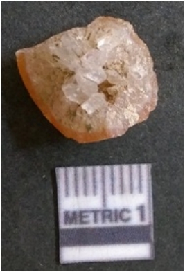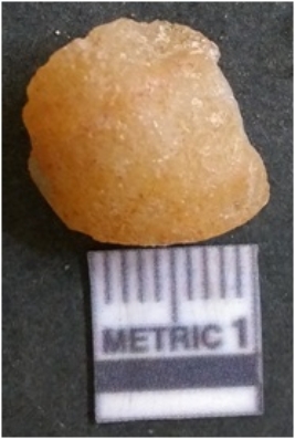 | Description / विवरण | The quartz flake has sharp flaked edges and pointed ends as a result of flaking. The piece is semi-transparent in nature with irregular fracture pattern. The piece is roughly triangular in shape and has a prominent bulb of percussion. |