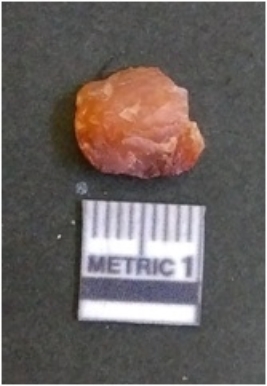 | Description / विवरण | It is carnelian flake red in color, with sharp flakes edges and a small bulb of percussion owing to knapping activity. The piece has sharp flaked edges and a crypto-crystalline matrix. |