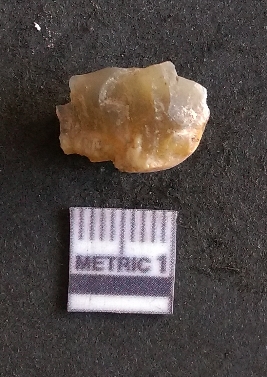 | Description / विवरण | The quartz fragment shows prominent flaks scars and sharp flaked ends as a result of flaking. The piece is translucent white and shows cryptocrystalline matrix. |