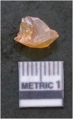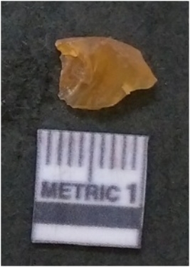 | Description / विवरण | It is chalcedony flake, translucent in appearance. The piece shows sharp pointed ends and flake scars on the surface as a result of flaking. The piece shows a bulb of percussion. |