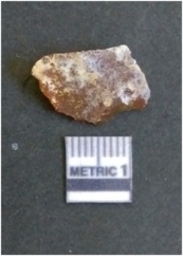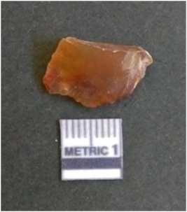 | Description / विवरण | It is carnelian flake red in color, with sharp flakes edges and a small bulb of percussion owing to knapping activity. The piece has sharp flaked edges and a crypto-crystalline matrix. |