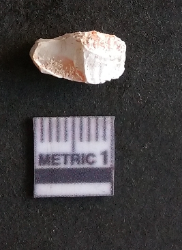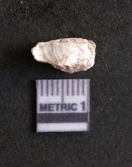 | Description / विवरण | The quartz fragment shows prominent flaks scars and sharp flaked ends as a result of flaking. The piece is translucent white and shows cryptocrystalline matrix. |