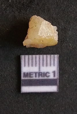 | Description / विवरण | The quartz fragment shows prominent flaks scars and sharp flaked ends as a result of flaking. The piece is translucent white and shows cryptocrystalline matrix. |