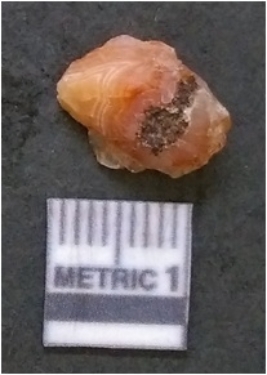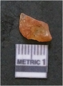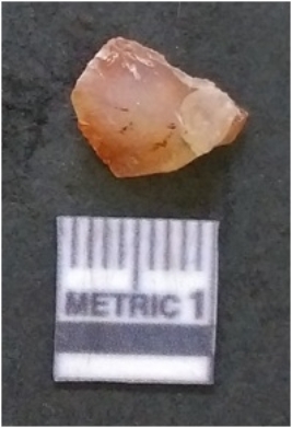 | Description / विवरण | It is chalcedony flake, translucent in appearance. The piece shows sharp pointed ends and flake scars on the surface as a result of flaking. The piece shows a bulb of percussion. |