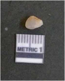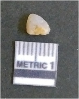 | Description / विवरण | The quartz flake has sharp flaked edges and pointed ends as a result of flaking. The piece is semi-transparent in nature with irregular fracture pattern. The piece is roughly triangular in shape and has a prominent bulb of percussion. |