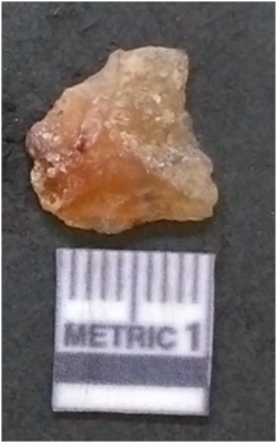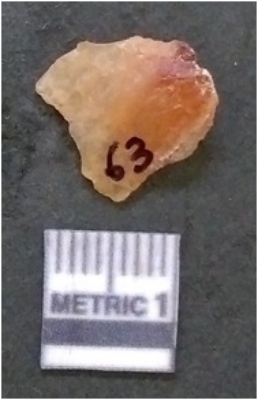 | Description / विवरण | It is chalcedony flake, translucent in appearance. The piece shows sharp pointed ends and flake scars on the surface as a result of flaking. The piece shows a bulb of percussion. |