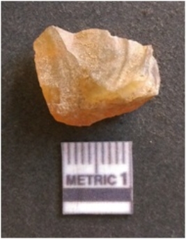 | Description / विवरण | It is chalcedony flake, translucent in appearance. The piece shows sharp pointed ends and flake scars on the surface as a result of flaking. The piece shows a bulb of percussion. |