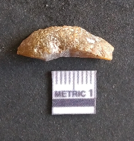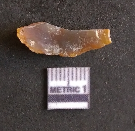| Description / विवरण | The agate piece is translucent in appurtenance, with angular flaked edges and a bulb of percussion. The piece shows flake scars on the surface. |