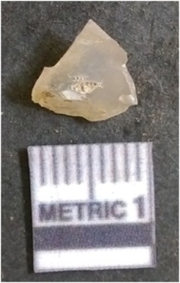 | Description / विवरण | It is chalcedony flake, translucent in appearance. The piece shows sharp pointed ends and flake scars on the surface as a result of flaking. The piece shows a bulb of percussion. |