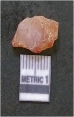 | Description / विवरण | It is chalcedony flake, translucent in appearance. The piece shows sharp pointed ends and flake scars on the surface as a result of flaking. The piece shows a bulb of percussion. |