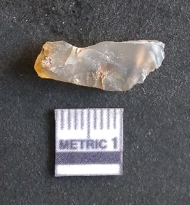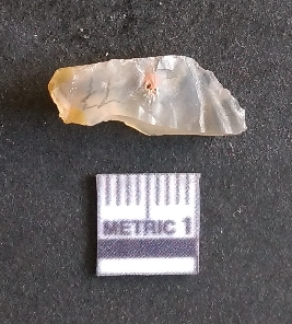 | Description / विवरण | The agate piece is translucent in appurtenance, with angular flaked edges and a bulb of percussion. The piece shows flake scars on the surface. |