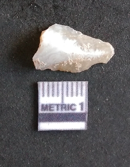 | Description / विवरण | The agate piece is translucent in appurtenance, with angular flaked edges and a bulb of percussion. The piece shows flake scars on the surface. |