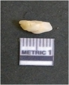| Description / विवरण | The quartz flake has sharp flaked edges and pointed ends as a result of flaking. The piece is semi-transparent in nature with irregular fracture pattern. The piece is roughly triangular in shape and has a prominent bulb of percussion. |