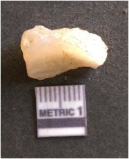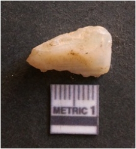 | Description / विवरण | It is chalcedony flake, translucent in appearance. The piece shows sharp pointed ends and flake scars on the surface as a result of flaking. The piece shows a bulb of percussion. |