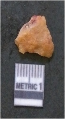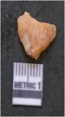 | Description / विवरण | It is chalcedony flake, translucent in appearance. The piece shows sharp pointed ends and flake scars on the surface as a result of flaking. The piece shows a bulb of percussion. |