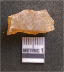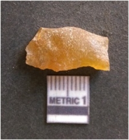 | Description / विवरण | It is chalcedony flake, translucent in appearance. The piece shows sharp pointed ends and flake scars on the surface as a result of flaking. The piece shows a bulb of percussion. |
