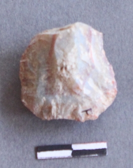 | Description / विवरण | The agate piece has flake scars all over the surface. One end has some part of the cortex. The piece has some impurities. |