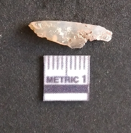 | Description / विवरण | The agate piece is translucent in appurtenance, with angular flaked edges and a bulb of percussion. The piece shows flake scars on the surface. |