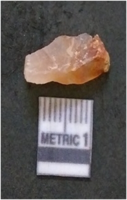 | Description / विवरण | It is chalcedony flake, translucent in appearance. The piece shows sharp pointed ends and flake scars on the surface as a result of flaking. The piece shows a bulb of percussion. |