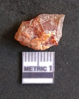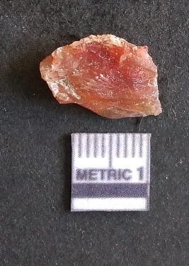 | Description / विवरण | The carnelian flake is reddish in color, with sharp flakes edges and a small bulb of percussion owing to knapping activity. |
