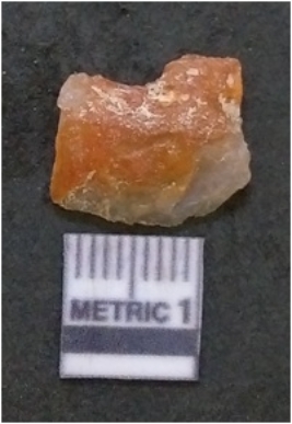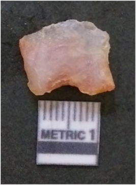 | Description / विवरण | It is chalcedony flake, translucent in appearance. The piece shows sharp pointed ends and flake scars on the surface as a result of flaking. The piece shows a bulb of percussion. |