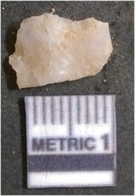 | Description / विवरण | It is chalcedony flake, translucent in appearance. The piece shows sharp pointed ends and flake scars on the surface as a result of flaking. The piece shows a bulb of percussion. |