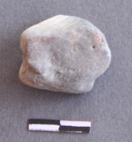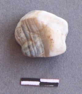 | Description / विवरण | It is a rounded fragment of banded agate. The cortex is visible on the outer side, and is whitish in colour. |