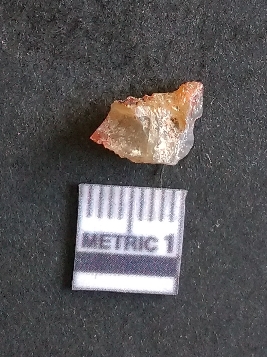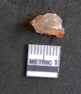 | Description / विवरण | The carnelian flake is reddish in color, with sharp flakes edges and a small bulb of percussion owing to knapping activity. |