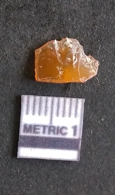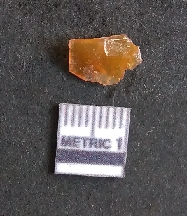 | Description / विवरण | The carnelian flake is reddish in color, with sharp flakes edges and a small bulb of percussion owing to knapping activity. |