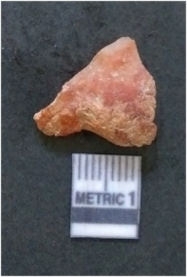 | Description / विवरण | It is chalcedony flake, translucent in appearance. The piece shows sharp pointed ends and flake scars on the surface as a result of flaking. The piece shows a bulb of percussion. |