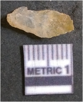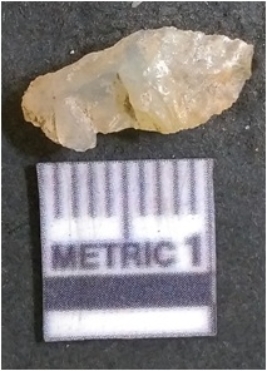 | Description / विवरण | It is chalcedony flake, translucent in appearance. The piece shows sharp pointed ends and flake scars on the surface as a result of flaking. The piece shows a bulb of percussion. |