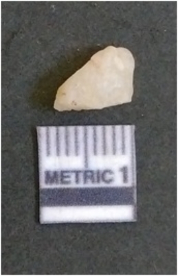 | Description / विवरण | The quartz flake has sharp flaked edges and pointed ends as a result of flaking. The piece is semi-transparent in nature with irregular fracture pattern. The piece is roughly triangular in shape and has a prominent bulb of percussion. |