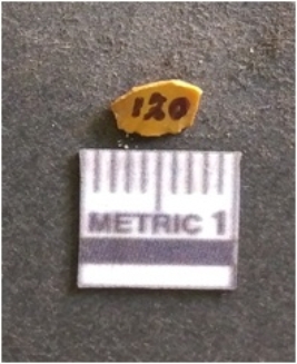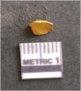 | Description / विवरण | The chert piece is dark in color, with a prominent bulb of percussion and sharp flaked edges. The piece is a part of lithic debitage or raw material for lithic knapping. The piece shows clear ripple marks and bulb of percussion. |